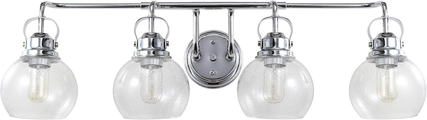 Up To 40% OFF JONATHAN Y JYL7406A Shirley 34 4-Light Metal/Bubbled Glass Vanity Light Contemporary Transitional 2200K Edison 25W Bulbs Included for Bathroom Hallway Living Room Bedroom Mirror Cabinet, Chrome Simple review